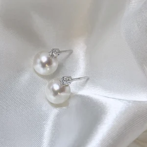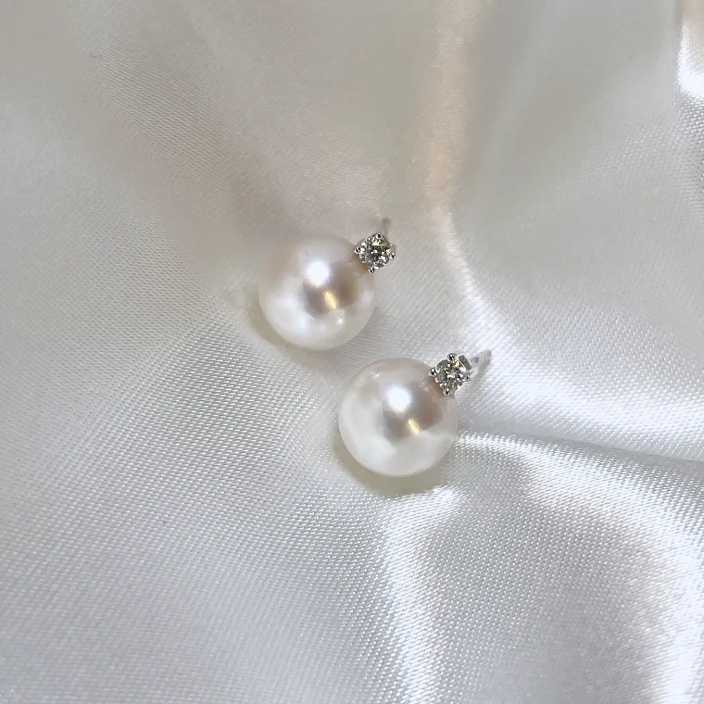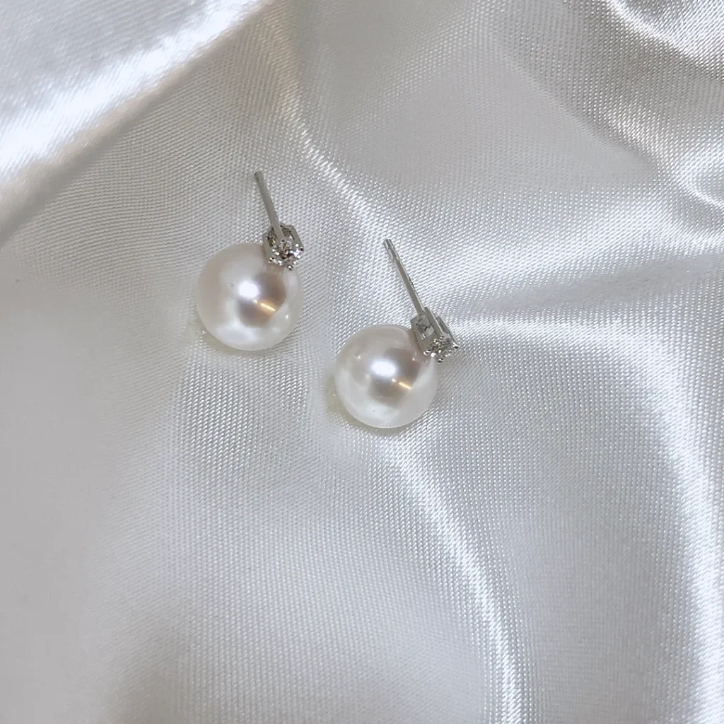 8.5-9mm Pearl Solitaire White Japanese Akoya Pearl Stud Earrings
