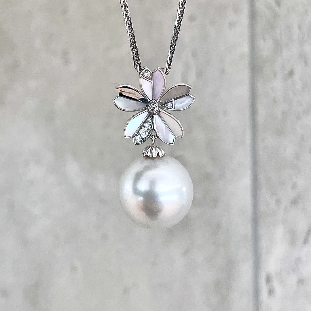 White South Sea Pearl Cherry Blossom Pendant