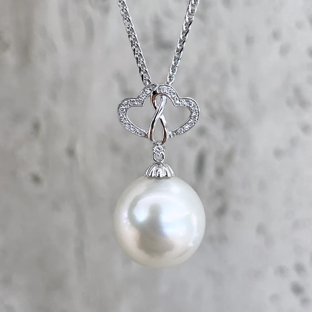 White South Sea Pearl Intertwined Hearts Pendant